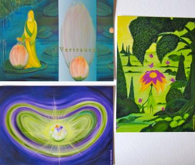 3 Kunstkarten mit den Motiven: Inneres Licht - Vertrauen - Freude