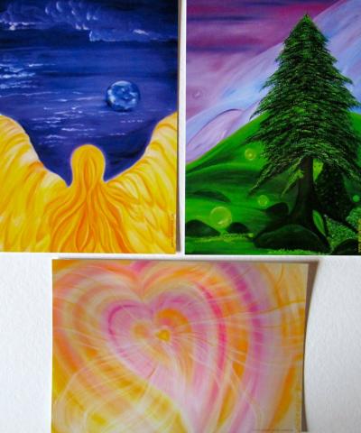 3 Kunstkarten mit den Motiven: Bedingungslose Liebe - Beschützt - Neugieriger Gnom