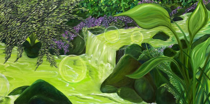 Durch die lichtvollen, farbigen Ölgemälde der Künstlerin entstehen Räume voller Kraft, Schönheit und Wohlbefinden.